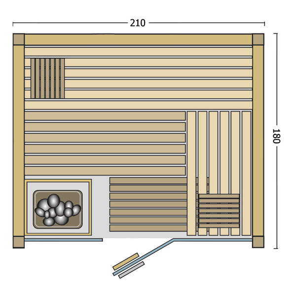 Sauna in Elementbauweise und mit 75 mm starken Wandelementen